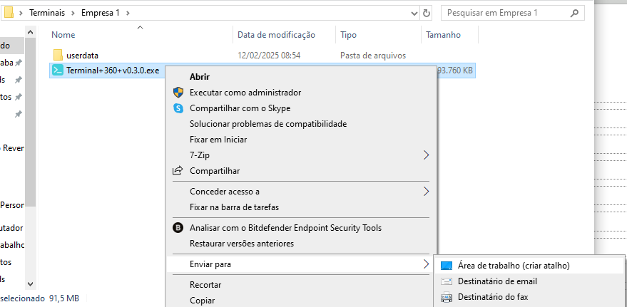 Acesse a pasta onde o executável do Terminal360 está salvo.