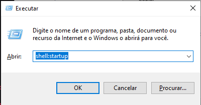 Pressione Windows + R, digite shell:startup e pressione Enter.