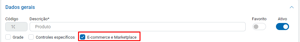 O envio para o Zhub é realizado diretamente no cadastro do produto em Cadastros > Estoque > Produtos e marque a caixa de E-commerce e Marketplace