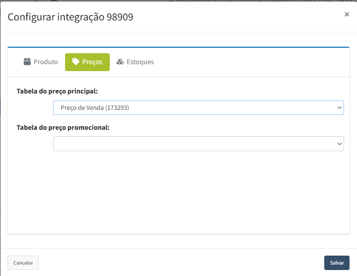 Preços: Define a tabela de preços e preço promocional. Caso não possua nenhuma cadastrada clique aqui.