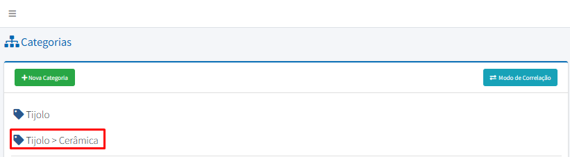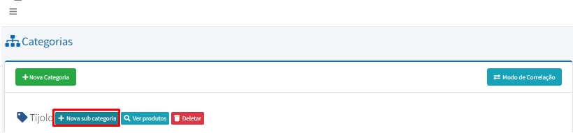 Após cadastrar a sub categoria, será representado da seguinte forma