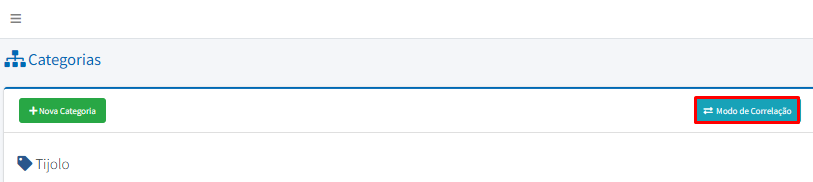 Também é possível correlacionar com categorias já existentes dentro do Marketplace já configurado, clique na opção Modo de Correlação e selecione a integração utilizada.