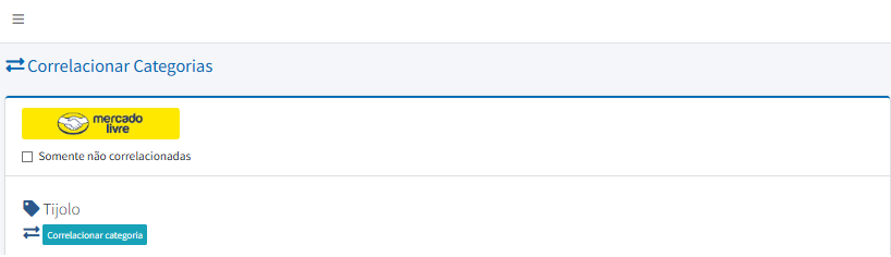 Para vincular a categoria do marketplace, selecione Correlacionar categoria e defina a utilizada dentre a lista.
