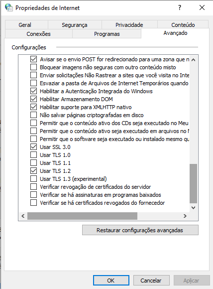 Clique na aba "Avançadas": Nessa aba deverá marcar as seguintes opções: