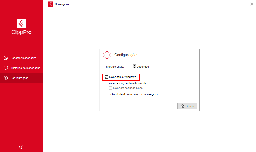 Marcando a opção de Iniciar com o Windows, ao ligar o computador o mesmo será iniciado automaticamente: