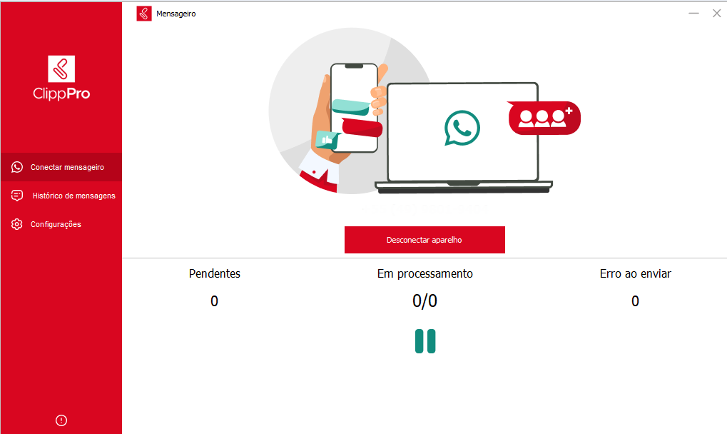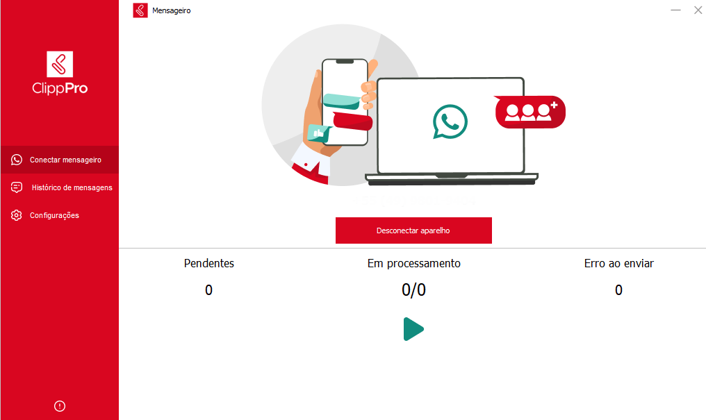 Para conectar um aparelho ao Mensageiro clique na aba "Conectar Mensageiro" e clique em "Conectar Aparelho":