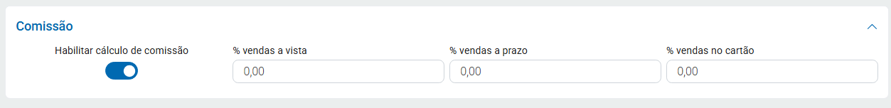 Marque a opção Habilitar cálculo de comissão e preencha as porcentagens desejadas.