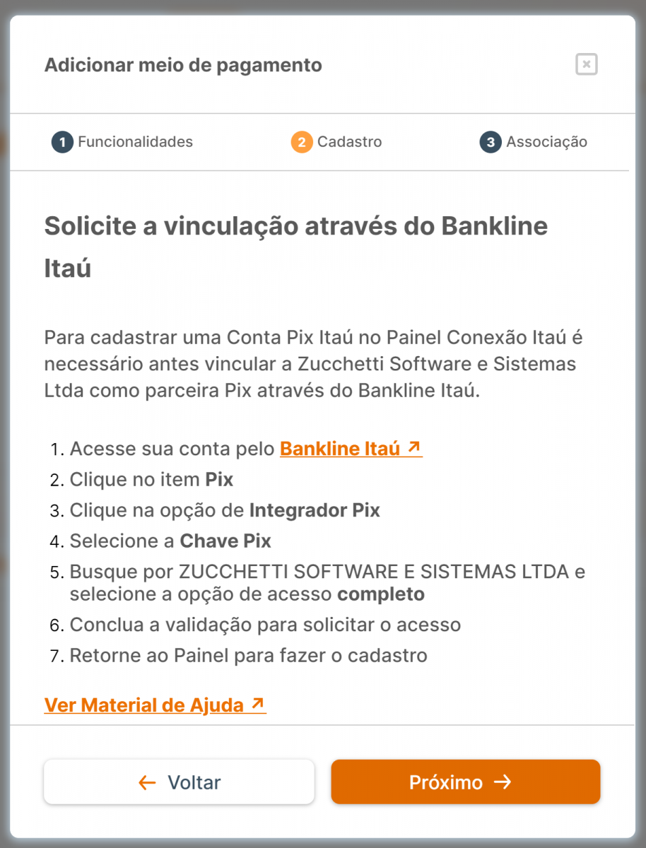 Faça os processos no seu Bankline Itaú e após retorne para esta janela e clique em Próximo.