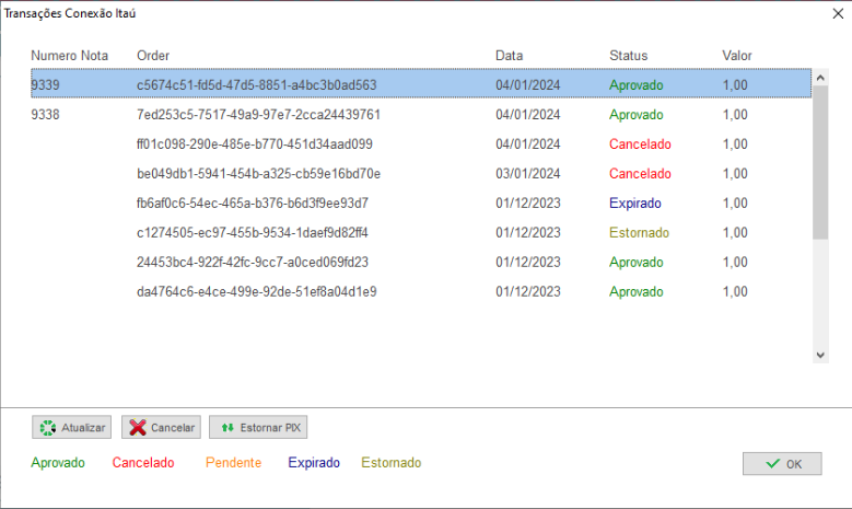 Acesse o menu de Caixa, e vá na opção de Transações - Integração Itaú