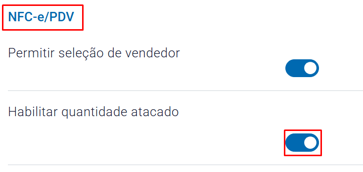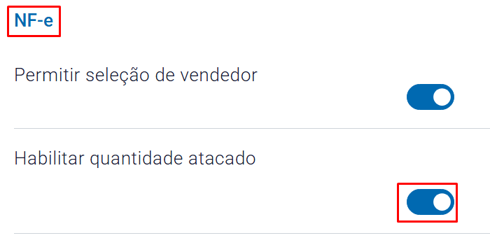 Nas abas NF-e e NFC-e, ative a opção "Habilitar quantidade atacado" para que o sistema reconheça o uso de preços diferenciados conforme a quantidade.