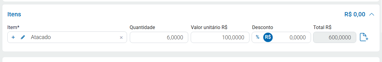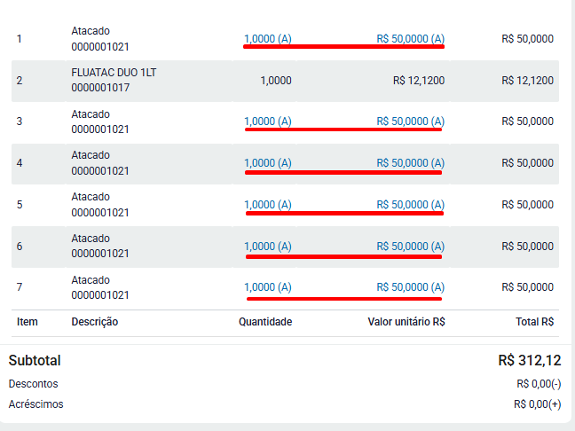 Separadamente: Ao lançar o mesmo produto mais de uma vez e atingir o total necessário, o sistema recalculará automaticamente os valores e aplicará o preço de atacado para todos os itens.