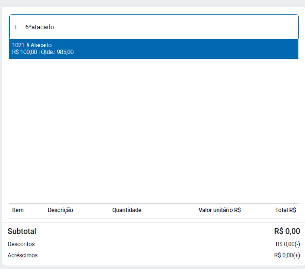Por atalho: Digite diretamente “quantidade * código ou descrição” e pressione Enter. O sistema aplicará o preço de atacado após a inclusão, caso a quantidade atinja o mínimo necessário.
