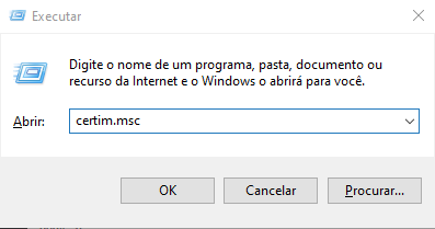 Pressione Windows + R novamente e digite certmgr.msc e após isso a tecla Enter.