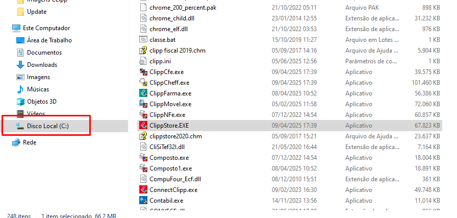 3. Vai estar abrindo as pastas Arquivos de Programas (x86) -> Compufour -> Clipp -> Base