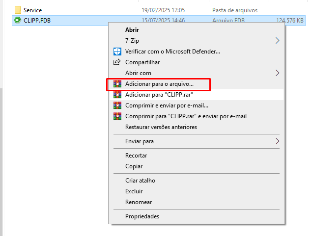 4. Feito isso com o sistema todo fechado (Inclusive nos terminais) vai estar compactando o arquivo CLIPP.FDB