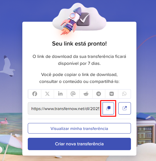 7. Quando finalizar a transferencia, vai ter sido gerado um link;
