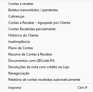Este relatório mostra todas as contas a serem recebidas, também é possível visualizar os dados para cobrança.