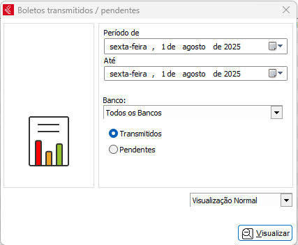 Relatório para conferência dos boletos emitidos, pode ser gerado um relatório de todos os boletos de todos os bancos ou individual por conta bancária.