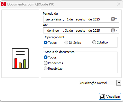 Gera todos os documentos feitos com a Conf. QR-Code PIX cadastrada na conta bancária no módulo Bancos, no relatório, serão dados referentes as NFCes com QR-CODE PIX.