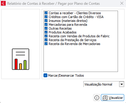 Esse relatório mostra o registro das contas a receber separados por plano de contas.