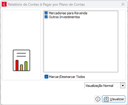 Esse relatório mostra o registro das contas a pagar separados por plano de contas.