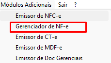 Abra o Gerenciador de NFe com a aba Módulos Adicionais ou direto através do Atalho