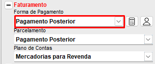 Prossiga para a NFe e realize o preenchimento dos dados da nota, e, ao finalizar selecione a forma de pagamento Pagamento Posterior.