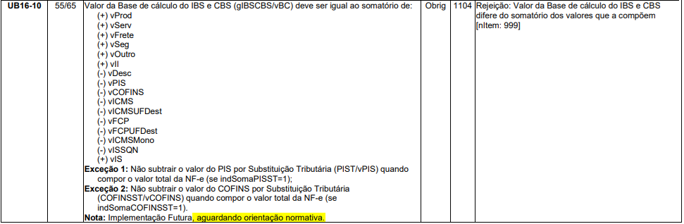 Exceção 1: Não subtrair o valor do PIS por Substituição Tributária (PIST/vPIS) quando compor o valor total da NF-e (se indSomaPISST=1);