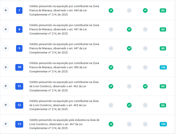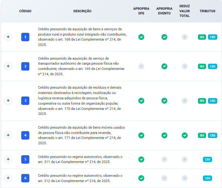Além disso também tem uma Tabela detalhada referente ao crédito presumido para validar mais informações sobre IBS e CBS: