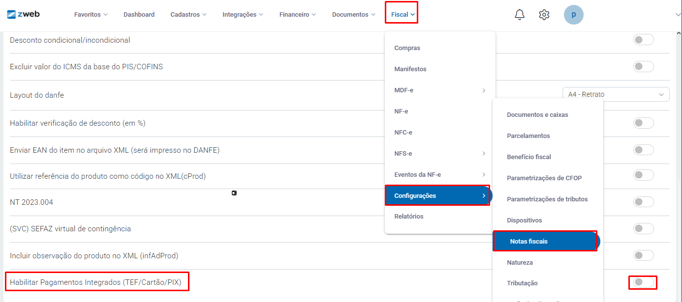 Da mesma forma ocorre com o TEF , lembrando que o mesmo deve estar configurado no Terminal Zweb, as rotinas também são as mesmas da NFCe.