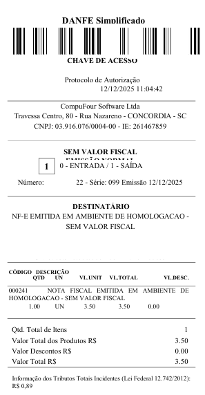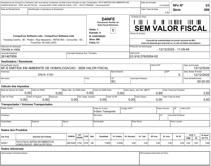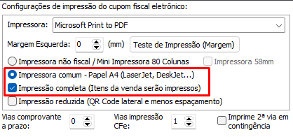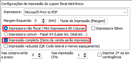 Com a mini impressora selecionada, a impressão apresenta da seguinte forma.