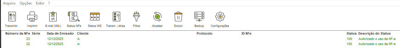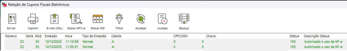 A NF-e será apresentada tanto no Gerenciador de NF-e como no Emissor de NFC-e com o modelo 55.