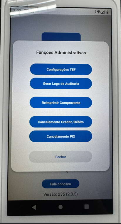 Dentro do ZPOS > Funções Administrativas > Configurações do Tef
