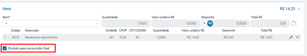 Para utilizar na NFe, ao incluir o item, marque a checkbox de Produto para consumidor final