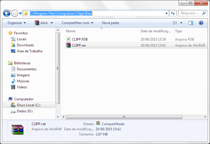 E-mail dos seus contatos: Informe o e-mail do Analista da CompuFour que solicitou base de dados.