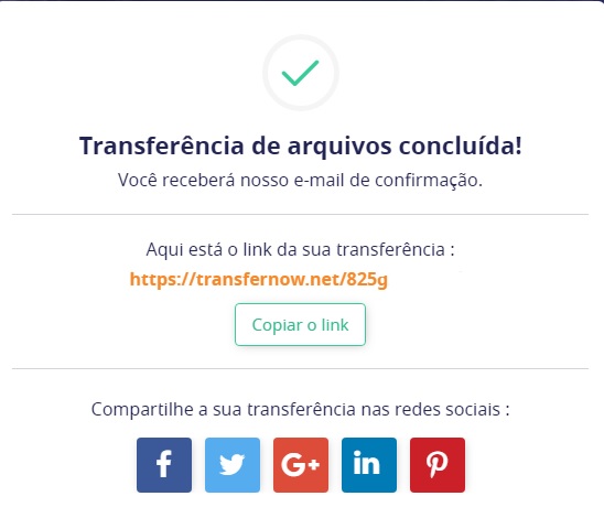 Após preencher as informações, clique em Enviare o arquivo será enviado: