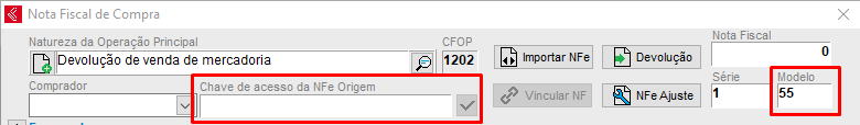 Depois de ajustar tanto o modelo quanto a Chave de acesso de origem e verificado a série, pode finalizar a nota de compra, reabrir a nota de venda e transmitir novamente.