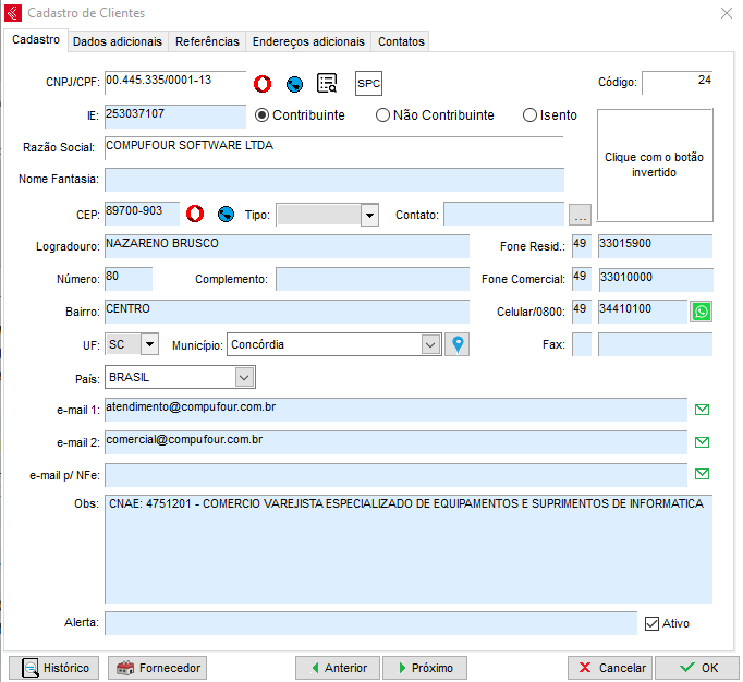 Persistindo, Verifique se todos os Campos Obrigatórios dos cadastros estão preenchidos.