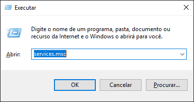 . Na janela Executar digite services.msc e pressione OK.