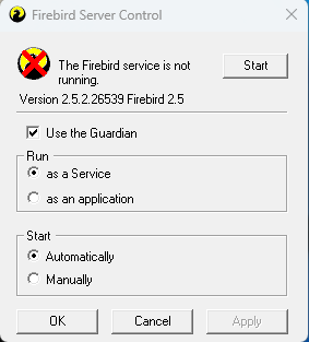 Verifique se o Firebird encontra-se em execução em seu computador, para verificar o Firebird siga o procedimento: