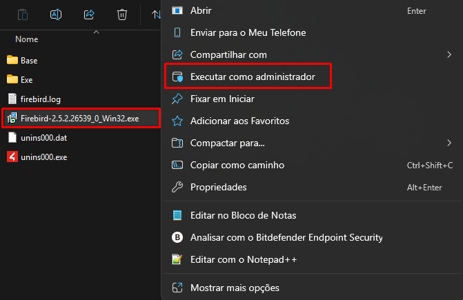 OBS²: Caso apresente algum erro ao iniciar o serviço Firebird ou o mesmo não permitir ser parado/iniciado realize o próximo procedimento.