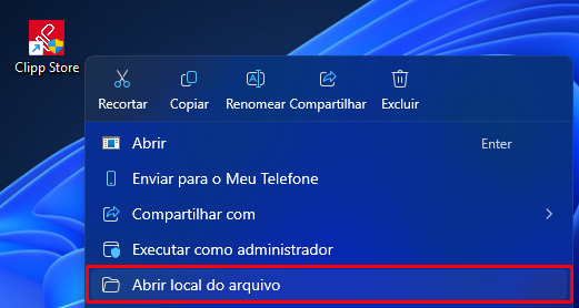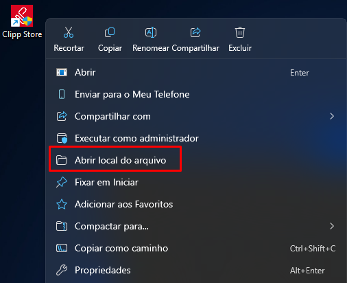 Em seguida, localize o atalho do Clipp Store, pressione com o botão direito do mouse > Abrir local do arquivo;