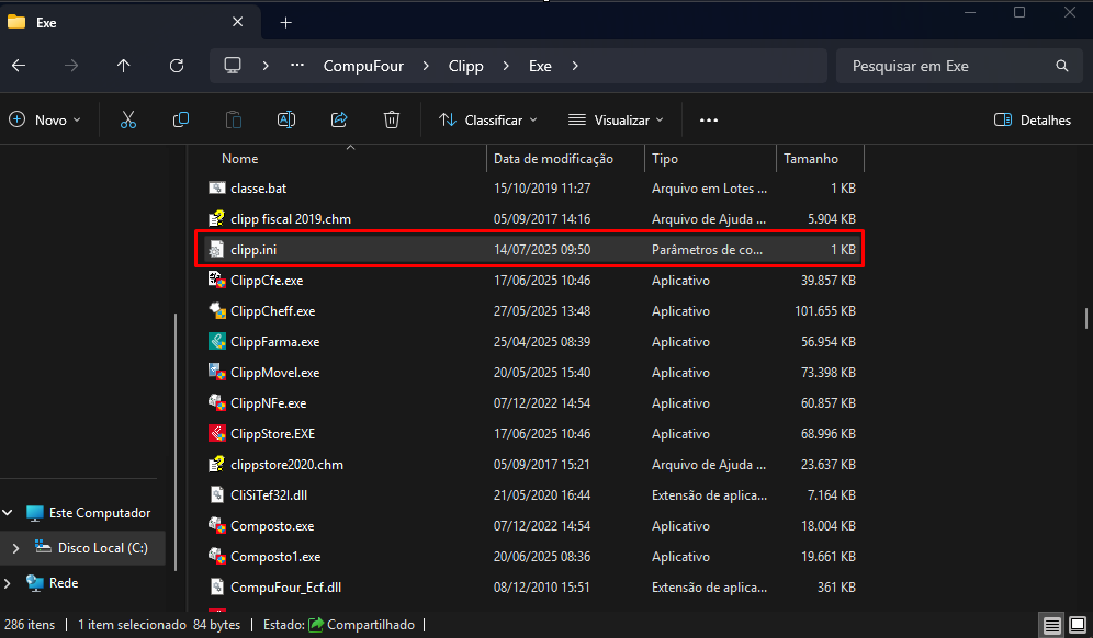 Na pasta do sistema, localize o arquivo clipp.ini ou somente clipp com o ícone de uma engrenagem;