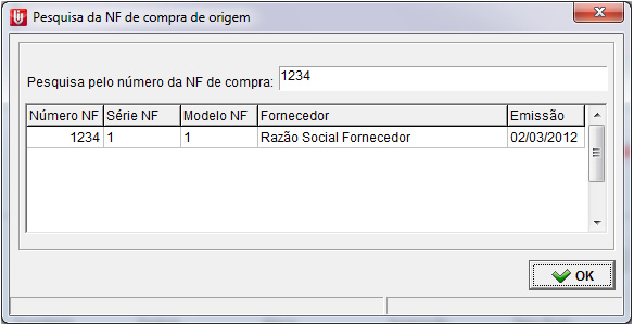 3. Secionando a natureza de operação será solicitada a nota referente a compra (nota de itens).