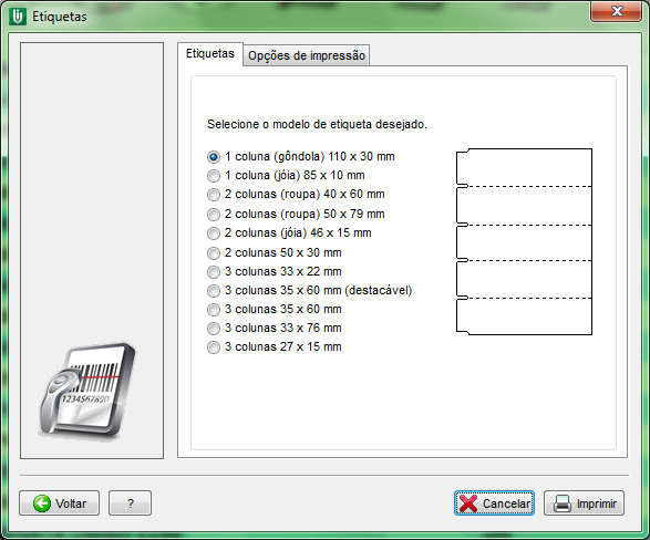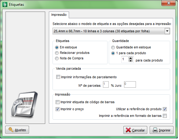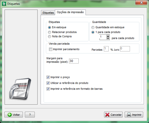 Imprimir o preço: irá imprimir etiquetas com a informação do preço dos itens;