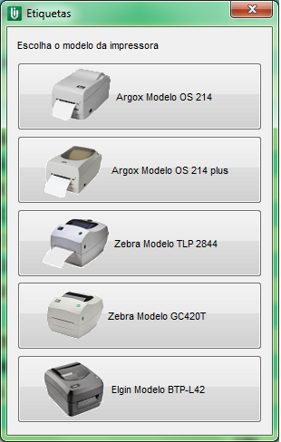 Para fazer a impressão clique no ícone de Estoque, no menu Arquivo / Etiquetas / Bobina, escolha o modelo da sua impressora: