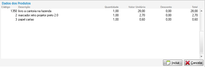 Os produtos que foram informados serão listados em seu pedido de venda.