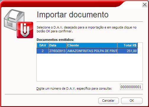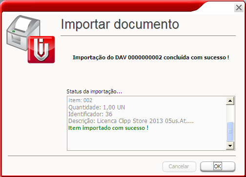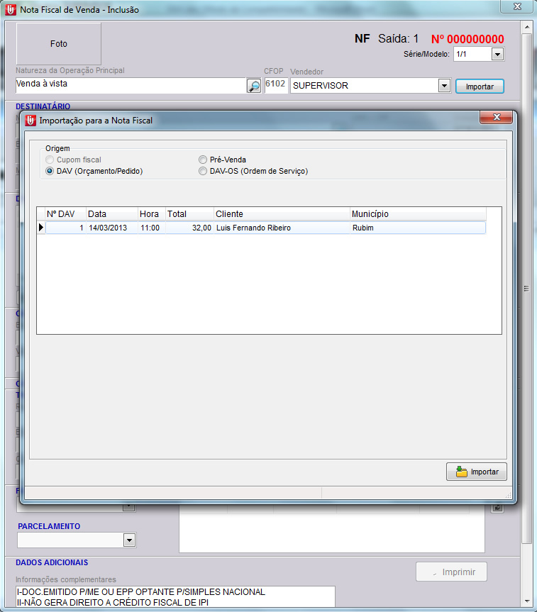 Selecione o DAV à ser importado, confirme e aguarde a importação dos itens.