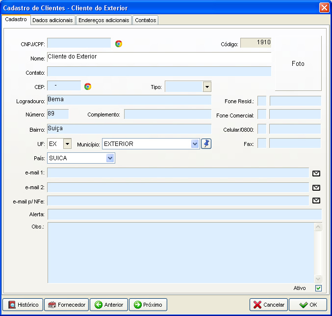 - UF = EX (ou seja, Exportação);