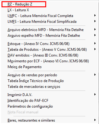 Na redução Z é impressa todas as informações de vendas efetuadas no dia, além desses valores são armazenadas informações de cancelamentos, descontos, acréscimos. A redução Z deve sempre ser efetuada no mesmo dia ao termino do trabalho na empresa.